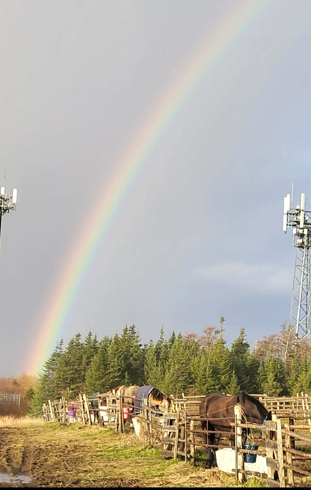 Large, individual paddocks, daily turnout and feeding. Sometimes includes a rainbow.